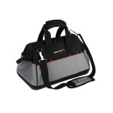 GM-004 Wide Mouth Tool Bag With Hard Base is made of reinforced nylon construction with large, zipped cantilever opening and comfortable carry handle. 13 external pockets, 8 internal pockets with removable padded shoulder strap and waterproof hard base.